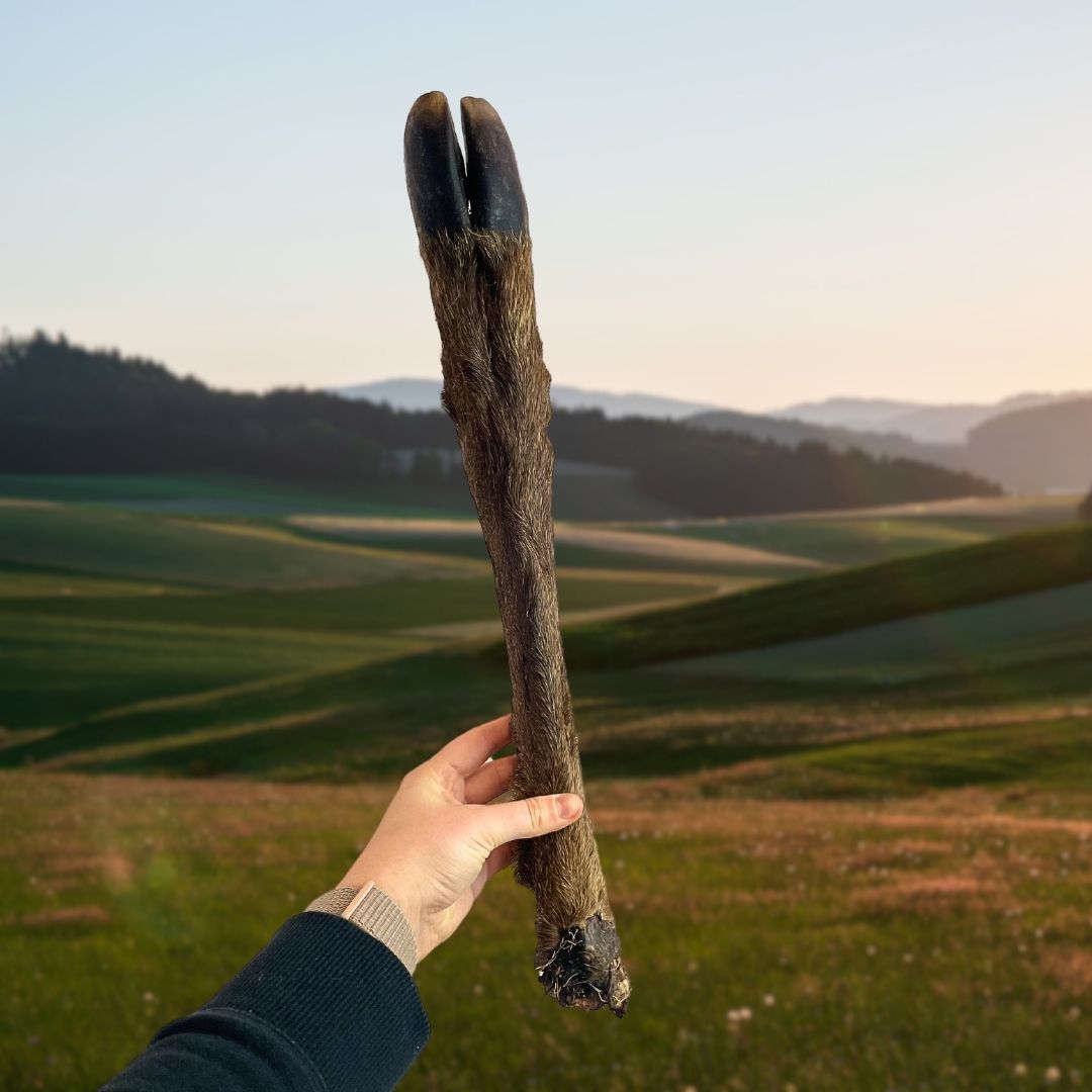 Our venison legs with fur are a great treat for promoting your dogs dental health.